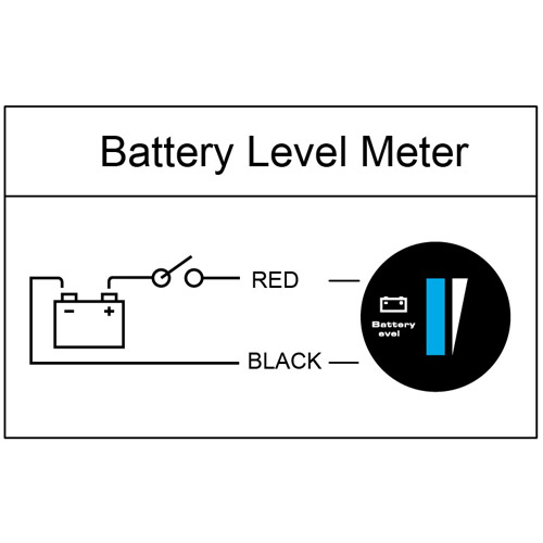 A 10-bar LED displays the state-of-charge battery level, bar by bar, from full to empty. At 70% level of discharge, a flashing LED signals an "energy reserve" alert. At 80% level of discharge, flashing LEDs provides an "empty" status warning.