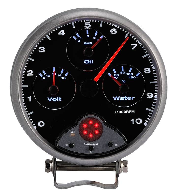 這個三合一錶包含了可調式的超轉燈,顏色切換,電壓錶、水溫錶,及油壓錶。這個設計協助節省空間、花費及更簡單的顯示效果。