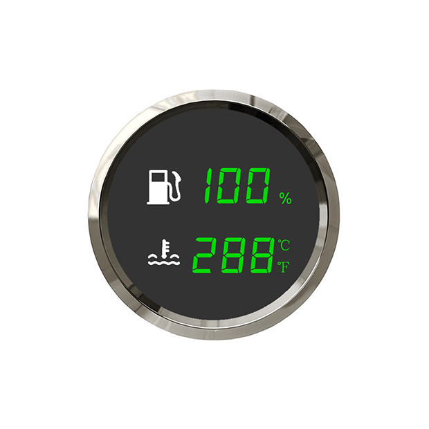 R52FT-BS Dual Digital Gauge Fuel Level Water Temp SILVER