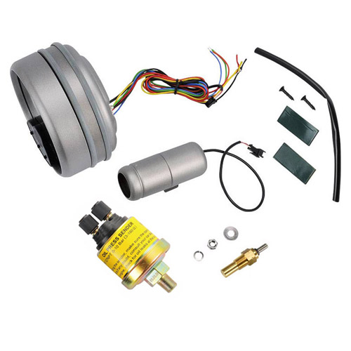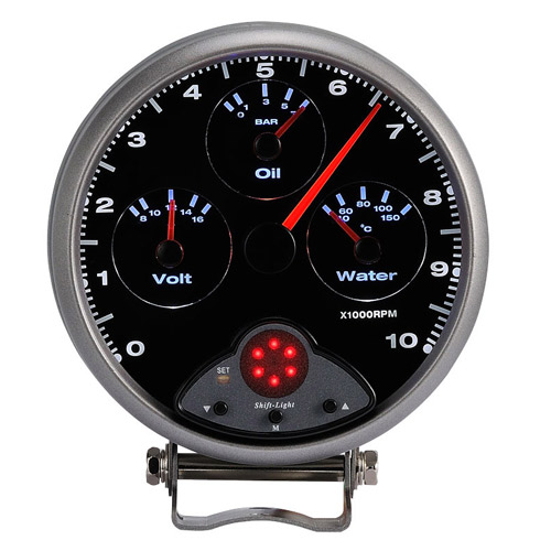 This 4-in-1 Shift-light Tachometer features an adjustable shift light and a RPM color auto-change function, voltmeter, water temperature, and oil pressure display. The design also helps to minimize the space for display and for easier monitoring the readouts.